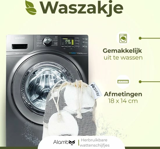 - Alamboo herbruikbare wattenschijfjes worden geleverd met een handige waszak