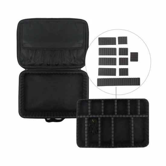 Deze multifunctionele opbergtas voor onder andere make-up, nagel accessoires of kappers benodigdheden heeft veel verschillende opbergmogelijkheden. De opbergtas bestaat uit verstelbare vakken. Verder is de tas stevig en praktisch en kan je hierdoor ook al je materialen en accessoires erin vervoeren. De opbergtas kan dan ook op meerdere manieren worden gedragen. De schouderband kan namelijk op verschillende manieren aan de tas worden bevestigd.