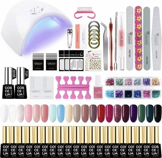 Uitgebreide premium gelnagellak set van Coscelia, ideaal voor de starter. Het pakket bevat alle benodigde accesoires om eindeloos te experimenteren. De set is zowel geschikt voor de starter als de ervaren nagellak gebruiker. Doordat er twintig verschillende kleurtjes in de set zitten, kan je het hele jaar vooruit.