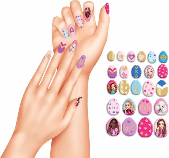 Voor echte beauty queens: de 24 zelfklevende kunstnagels van TOPModel hebben, passend bij elke nagel, verschillende maten. Met toffe designs en sommigen met gouden opdruk. Een handleiding legt het eenvoudige plakken en verwijderen uit.
