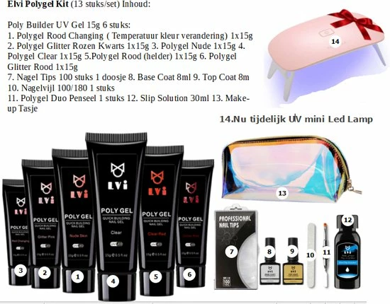 Elvi Poly Nagel UV Gel Kit– Prachtig polygel kit, inclusief een Nederlandse handleiding, het is het juiste pakket om mee te starten.