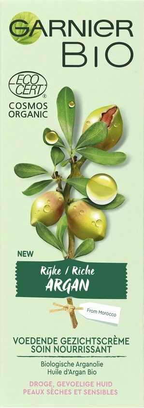 Onze cr?me met biologische Arganolie, bekend om zin herstellende eigenshappen, is verrijkt met biologische Alo? Vera en Hyaluronzuur, die de huid hydrateren, voeden en verzachten.