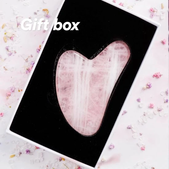 Deze 100% natuurlijke Jade Gua Sha Schraper is gemaakt van rozenkwarts en is van het Antwerpse merk GUT. Te gebruiken voor heerlijk zachte bewegingen op je gezicht en verdere lichaam. Het stimuleert je bloedsomloop, geeft je lymfesysteem een boost, en maakt de contouren van je gezicht strakker en helpt tegelijkertijd de spieren in je gezicht te ontspannen. De huid verheldert en kan ook hoofdpijn verhelpen.
