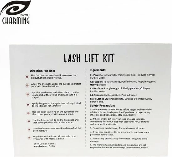 Op de achterkant van de doos staat een uitgebreide handleiding hoe je professioneel en efficient je eigen wimpers kunt zetten.