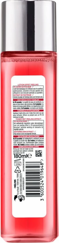 Een peeling toner van L’Oréal met 5% glycolzuur en watermeloen extract die zorgt voor een huid met een glow.