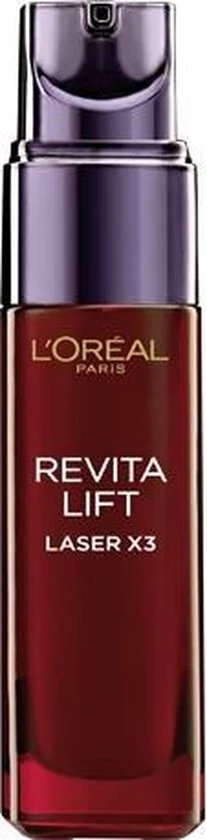 L?Or?al Paris Anti-Rimpel Serum ? Trekt snel in om rimpels te verminderen ? Versterkt de werking van een dag- en nachtcr?me ? Egaliseert en herstelt de huid, zowel in het gezicht als in de hals ? Met een hoge concentratie actieve ingredi?nten als hyaluronzuur en pro-xylaan Anti-rimpel serum met vernieuwde huid-effect Het serum van Revitalift Laser X3 heeft een drievoudige, anti-age werking: het vermindert rimpels, het versterkt en stimuleert het weefsel van de huid zodat de gezichtscontouren strakker worden en het verkleint de pori?n voor een zichtbaar egalere huid. Vanwege de hoge concentratie actieve ingredi?nten is een serum de meest effectieve oplossing om huidveroudering tegen te gaan. Het huidserum bevat hyaluronzuur dat snel in de huid trekt om de rimpels nauwkeurig te verminderen en de huid te herstellen. Geconcentreerd Pro-Xylaan, dat het steunweefsel in de huid versterkt en stimuleert, zorgt voor het opvullen van de huid. Ceramide Pro en LHA verkleinen de pori?n. Het verbetetert of verfijnt de huidtextuur en egaliseert de teint. Het Laser X3 serum is aanbevolen voor vrouwen vanaf 40 jaar. Het resultaat ? Direct: De kwaliteit van de huid is direct verbeterd: 86% van de vrouwen constateert het* ? Dag na dag: De rimpels verminderen en de pori?n verkleinen geleidelijk. ? Na ??n maand: De huid is egaler en steviger. 82% van de vrouwen constateert een voller gezicht* *Zelfevaluatie bij 52 vrouwen.