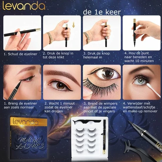 Er fabulous uitzien zonder uren voor de spiegel te staan? Met de magnetische fake lashes van levanda kan het. Na het aanbrengen van de magnetische eyeliner breng je de nepwimpers gemakkelijk en zeer snel aan met de applicator. Krijg je de valse wimpers niet meteen op de juiste plek? Geen zorgen, je kunt de magnetische wimpers eenvoudig loshalen, verschuiven en corrigeren.