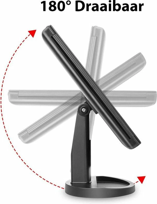 Een stabiele en solide basis maakt verschillende en talrijke manipulaties van de spiegel mogelijk zonder bang te hoeven zijn om te kantelen. Bovendien kan de spiegel 180? verticaal worden versteld! De standaard kan worden gebruikt als een handige plank voor cosmetica of penselen.