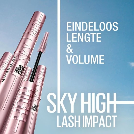 De Maybelline Lash Sensational Sky High mascara is een lengte mascara die daarnaast zorgt voor natuurlijk ogend volume. Het flexibele, kunststof-borsteltje heeft de vorm van een punt zodat zelfs de kleinste en kortste wimperhaartjes worden meegenomen. Deze puntvormige borstel is bij uitstek geschikt om korte wimperharen lengte te geven, wimpers lijken langer vanuit elke hoek. De mascaraformule is verrijkt met bamboe extract voor eindeloos lange wimpers, zonder de wimpers te verzwaren. Lash Sensational Sky High Mascara voor een sky high impact! Oftalmologisch getest, geschikt voor gevoelige ogen en lensdragers.