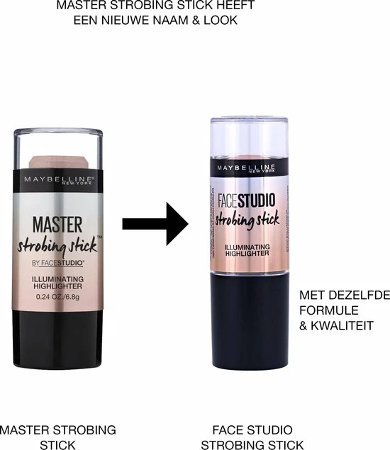 Strobing stick voor een perfecte en gemakkelijke applicatie. De creamy poeder formule geeft je de perfecte glowy look. Het strobe effect cre?ert een stralende look. De highlighter is van naam veranderd van master strobing stick naar face studio strobing stick, maar is verder hetzelfde. Hierdoor krijg je jouw vertrouwde highlighter nu thuis met de naam face studio strobing stick.