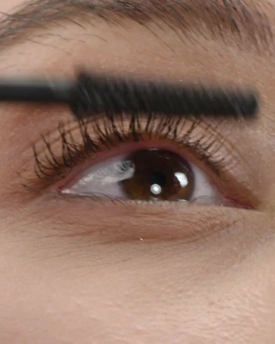 Stap 1: Houd de flexibele borstel tegen de wimpers en beweeg de mascaraborstel van de wimperaanzet naar de wimperuiteindes.