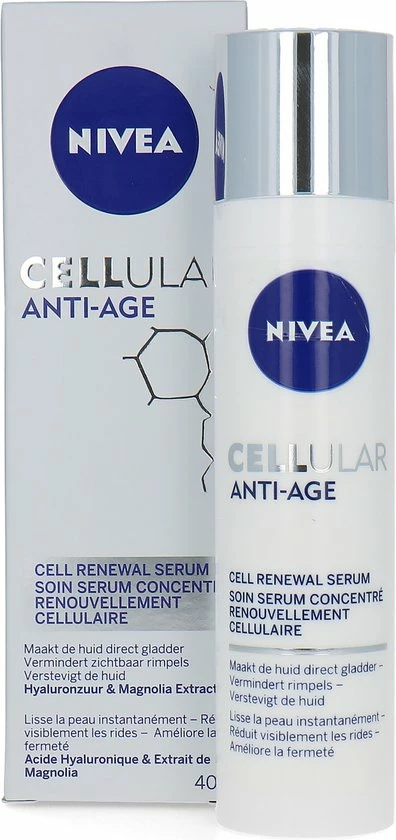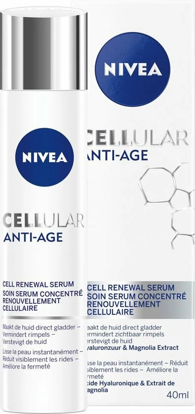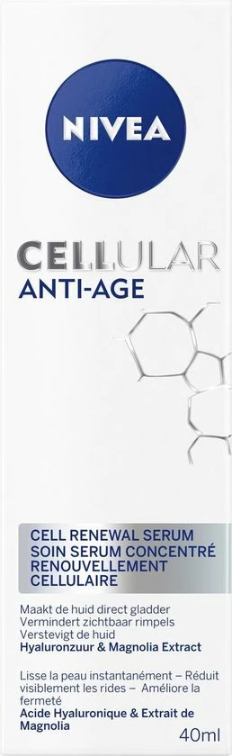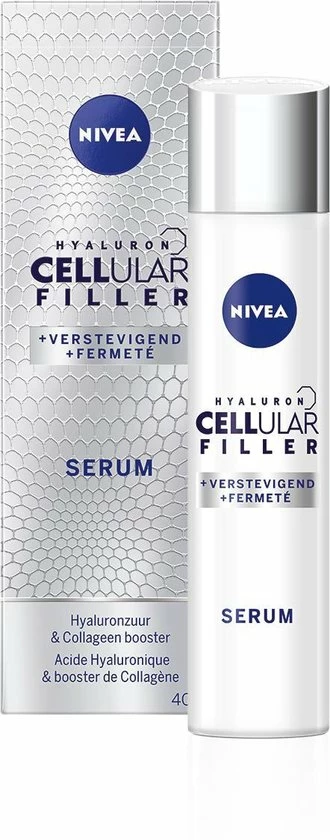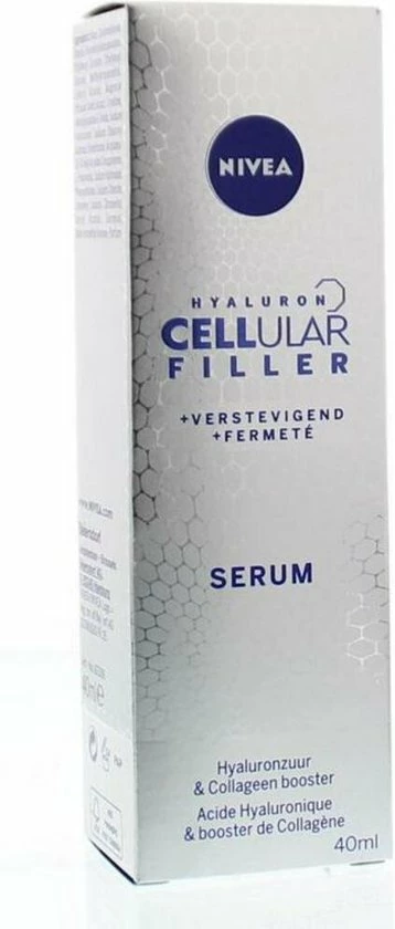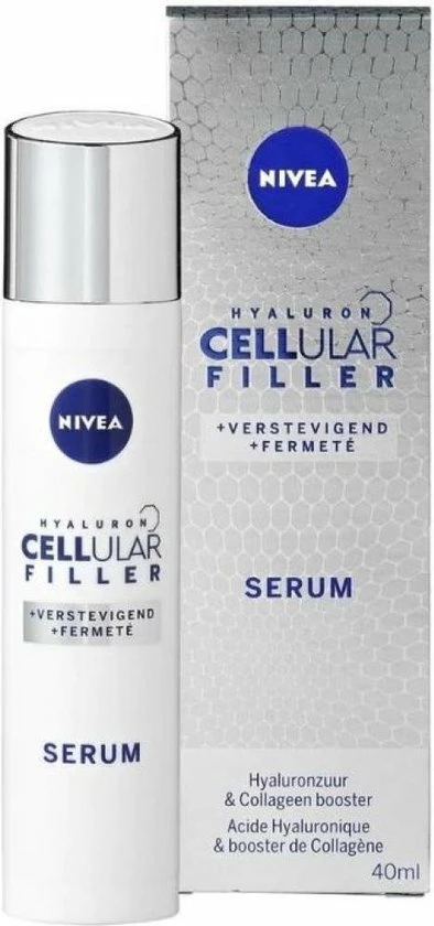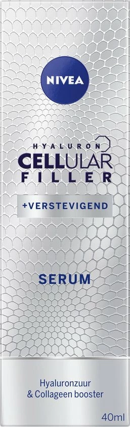 NIVEA CELLular Hyaluron Filler Anti-Age Serum maakt de huid direct gladder en zachter. De lichte formule met Hyaluronzuur en Collageen booster is een intensieve gezichtsverzorging. Het resultaat: rimpels zijn opgevuld en een bewezen verbetering van de huidstevigheid.