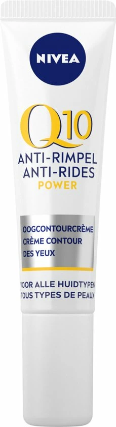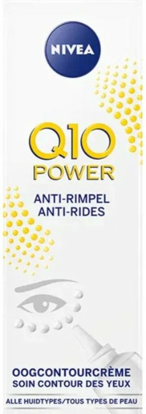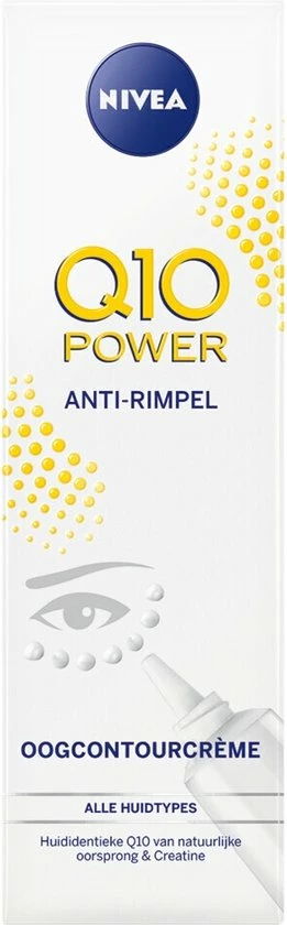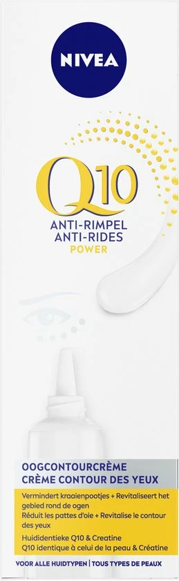 NIVEA Q10POWER Oogcontourcr?me bevat het krachtige antioxidant Q10 en 10x meer Creatine dan voorgaande formules, deze combinatie bestrijdt rimpels en donkere kringen rondom de ogen worden verminderd. De formule is speciaal ontwikkeld voor de delicate huid rondom de ogen en zorgt voor een voelbaar stevigere huid.