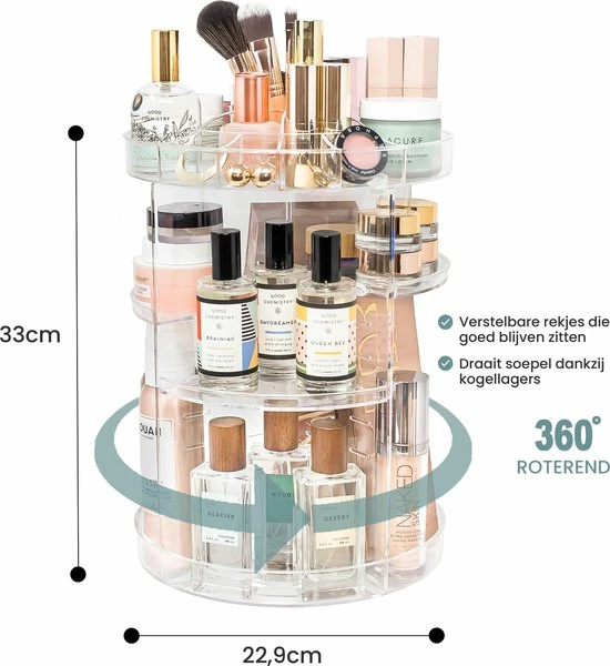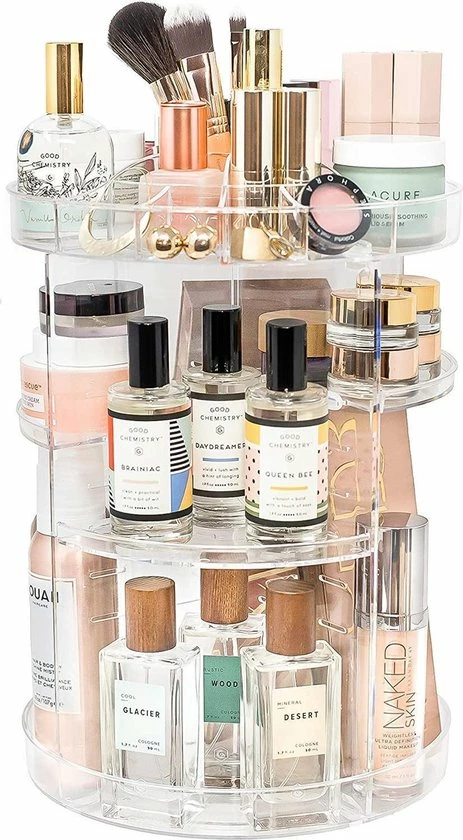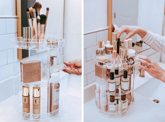 - TIJDBESPAREND: Niet meer eindeloos zoeken in make-up tasjes of rommelige laatjes, maar al je make up producten overzichtelijk georganiseerd op ??n plek dankzij het 360? draaimechanisme. Zo is je ochtendroutine eenvoudiger en sneller!